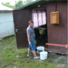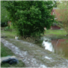 A rövid idő alatt leesett eső a mezőgazdasági területről félelmetes mennnyiségben és erővel a tanyák mögötti úton át zúdult le, a volt kisvasúti töltésnél lévő átfolyók ilyen mennyiségű vizet nem tudtak átengedni, a terület mélyen fekvő részén lévő horgászeszköztárolókat öntötte el az ár.